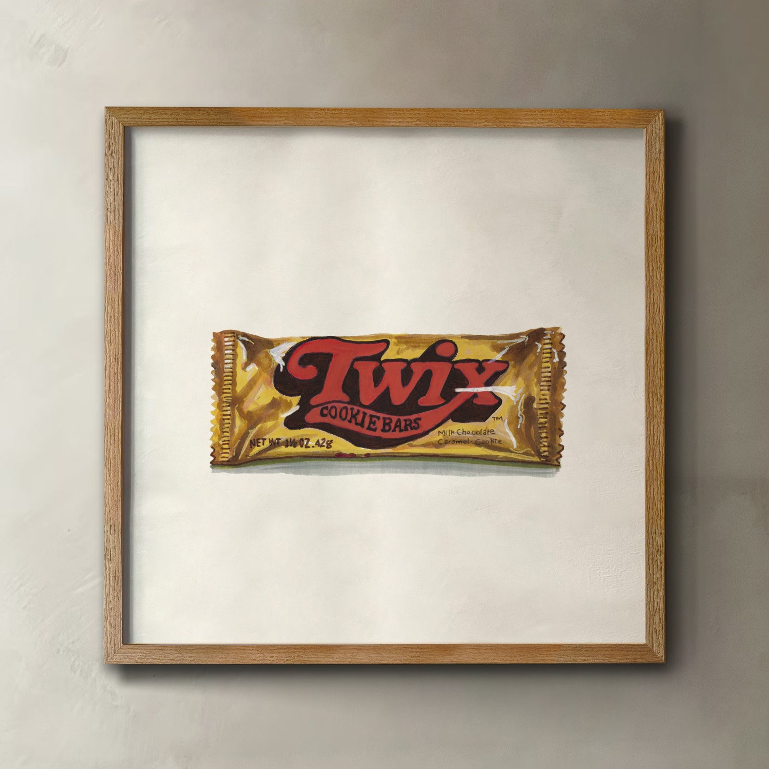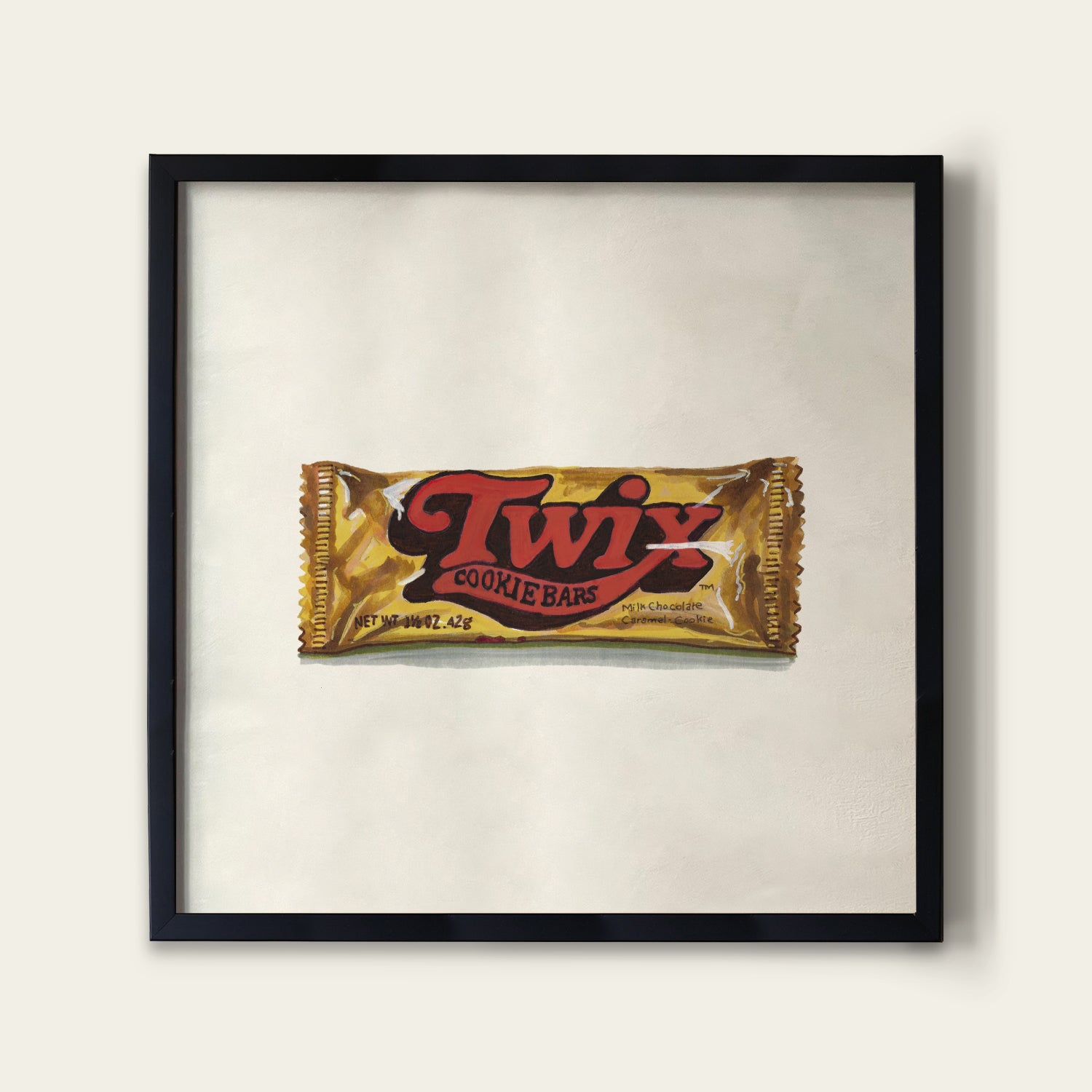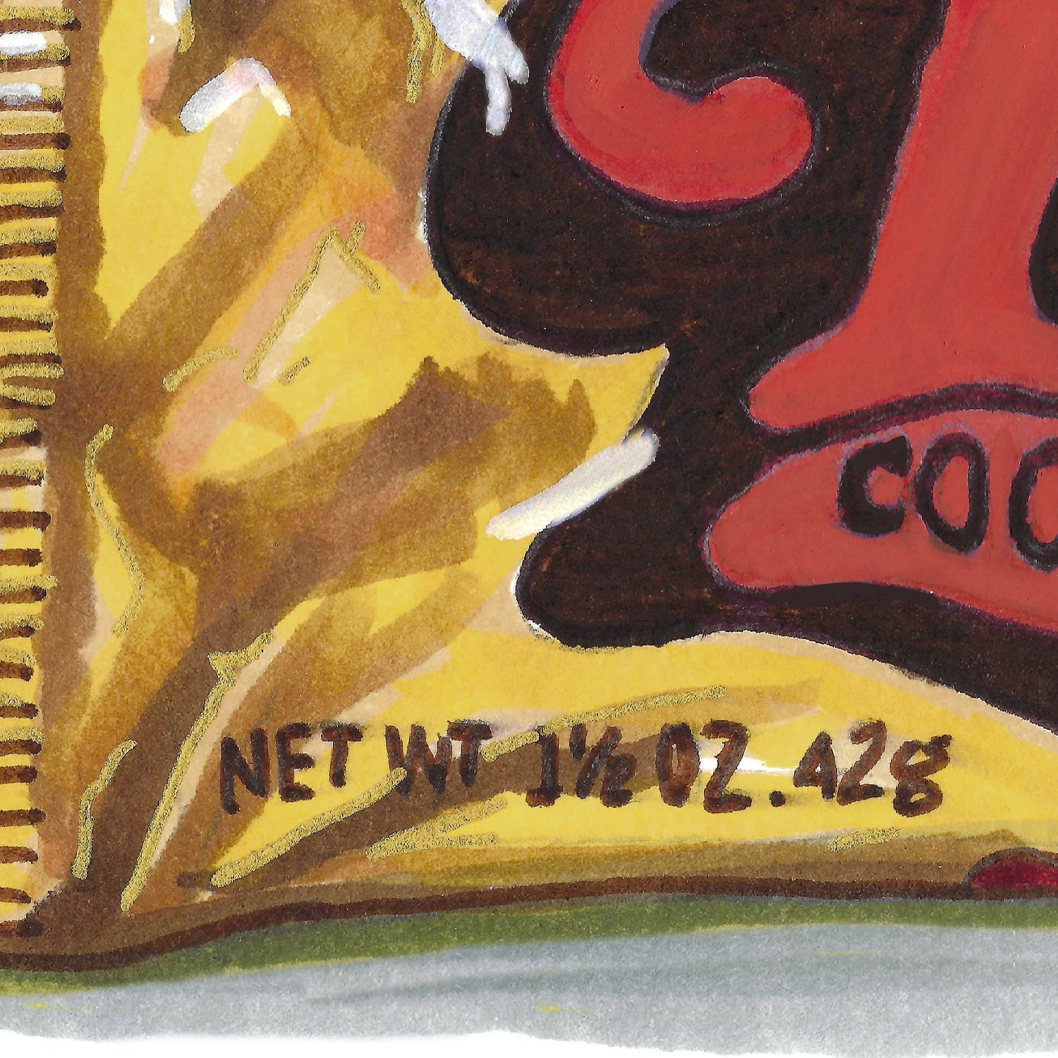 The original was painted in ink and acrylic, to show off the crinkled, reflective wrapper. Each print is professionally produced using archival inks on museum-quality fine art paper to preserve the rich color and subtle texture.