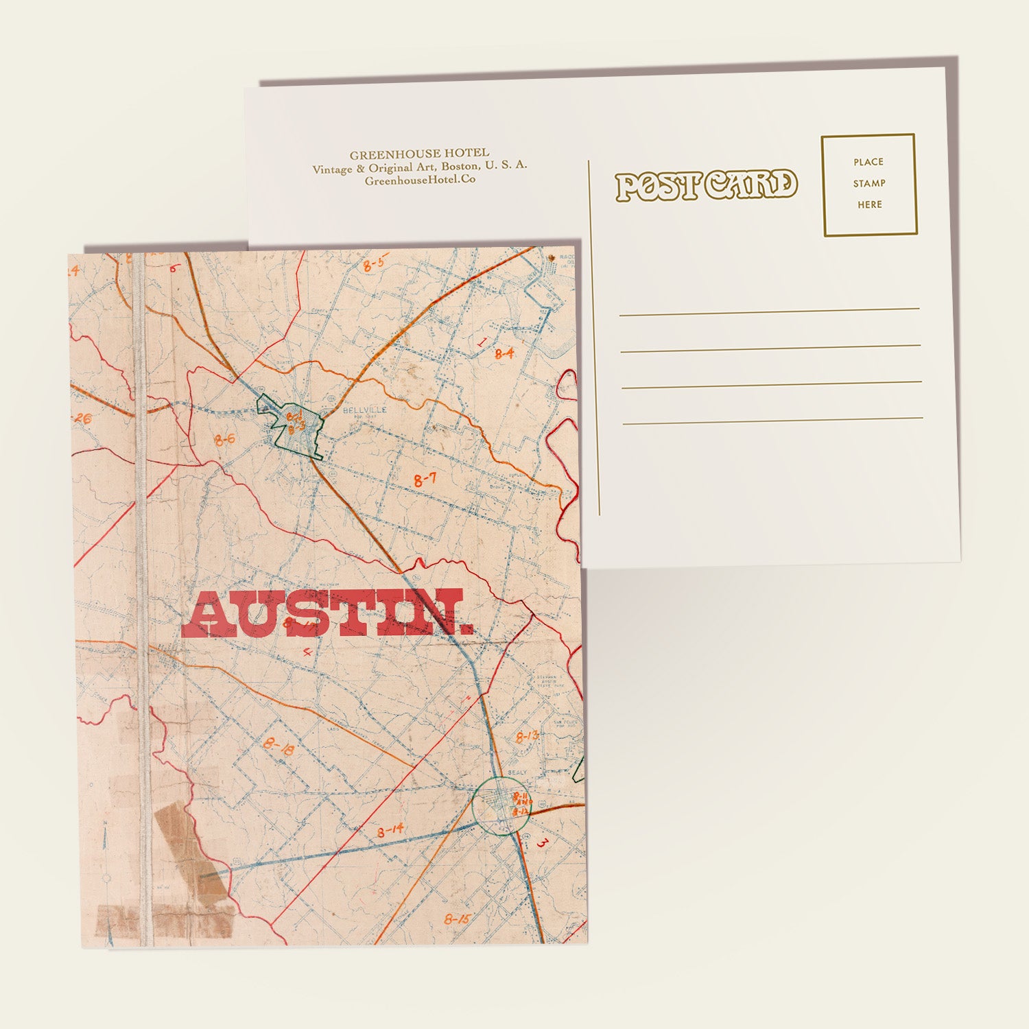 Based on an early 1900s insurance map. Each postcard is professionally produced using archival inks on thick cardstock. The back is lined and ready for your message—though many savvy shoppers pop them into a frame or stick them on the fridge like tiny modern heirlooms.