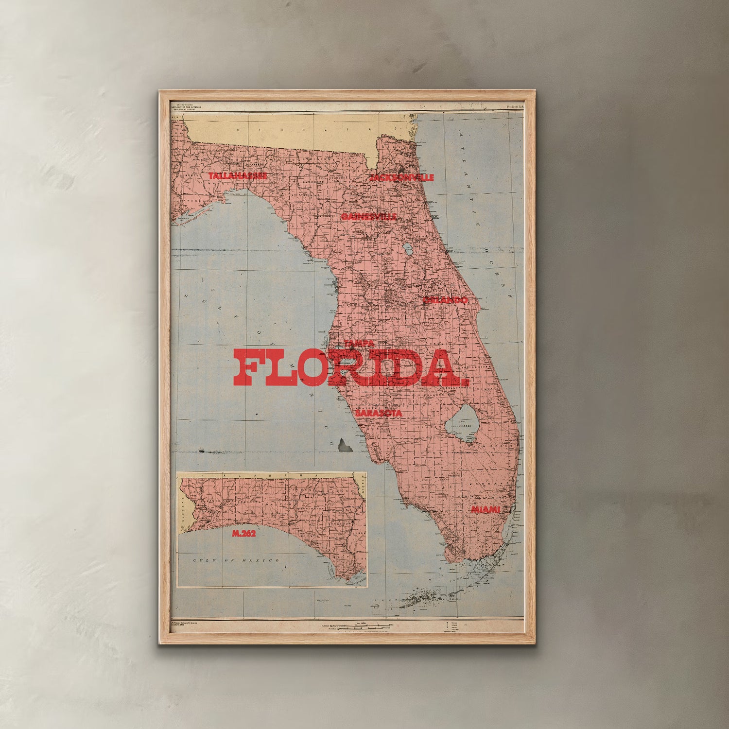 Perfect for gallery walls, offices, vacation homes, or Florida-themed interiors, this print makes a proud statement piece for Floridians past and present—or anyone who has a fondness for the Sunshine State.