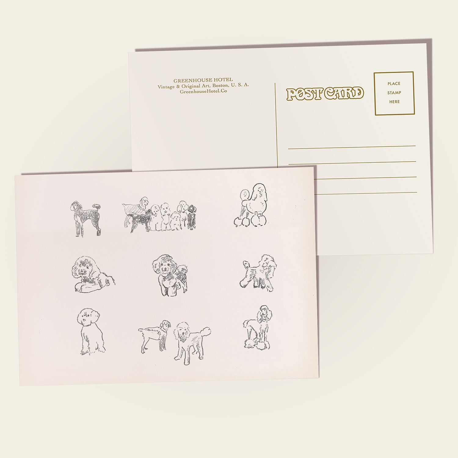 This playful postcard features a series of quick, expressive poodle sketches. Capturing the fluff, flair, and personality of these charming pups in just a few lines. Each pose tells its own story.