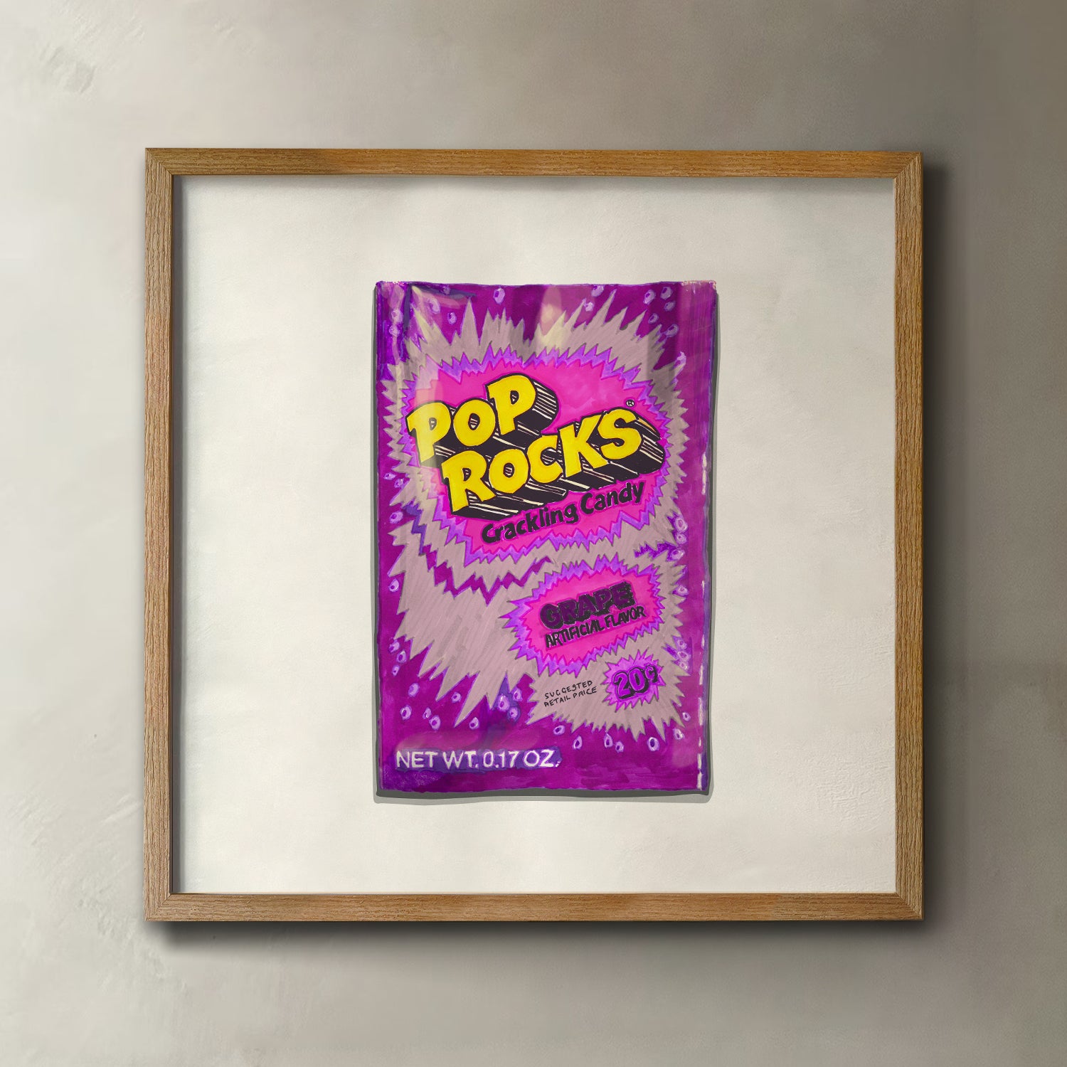 We have to go back to the beginning! I have always loved the original 1980s Pop Rocks packaging—vibrant, punchy, and full of retro attitude. This print brings a vintage vibe to the Pop Rocks collection with something a little more classic.