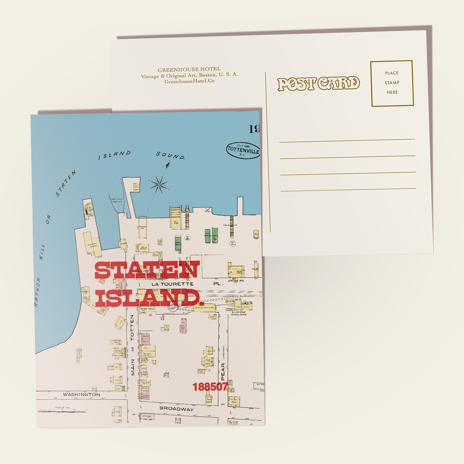 This vintage map design was inspired by a turn of the century zoning map. Each postcard is professionally produced using archival inks on thick cardstock. The back is lined and ready for your message—though many savvy shoppers pop them into a frame or stick them on the fridge like tiny modern heirlooms.