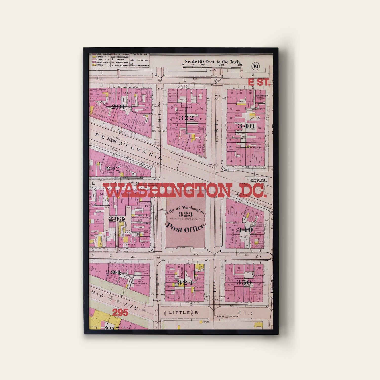 Inspired by an early 1900s insurance map. Each print is professionally produced using archival inks on thick, museum-quality fine art paper for long-lasting color and fine detail.